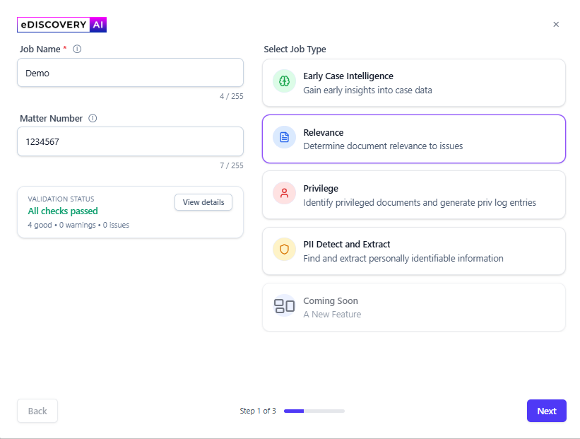 submitted to eDiscovery AI you can monitor the progress and work with the