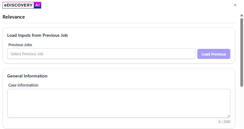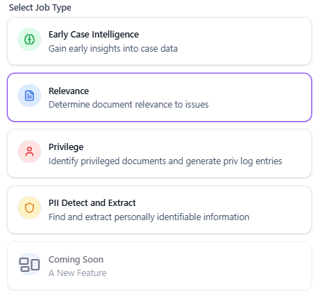 i) eDiscovery AI’s determination of whether a document is relevant or not, based on the criteria from the user’s prompt. There are 4 potential choices: Relevant, Not Relevant, Needs Further Review, or Technical Issue.